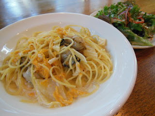 | 牡蠣とオレンジ白菜のクリームソーススパゲティ(ランチドリンク付き)¥1400 (ディナーでもお出し出来ます。お気軽にお申し付けください) 次回は