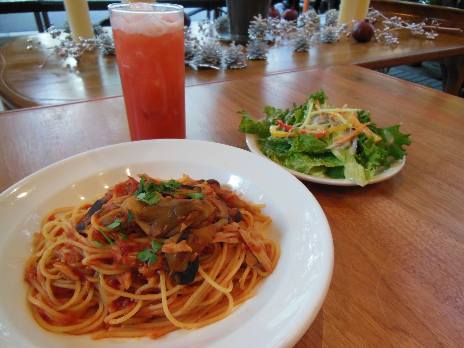 「ツナとキノコのトマトソーススパゲティ ボスカイオーラ」