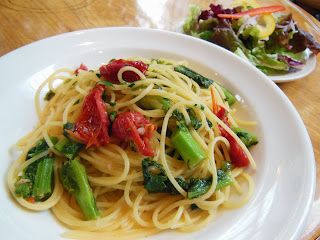 ・菜の花とセミドライトマトのスパゲティ(にんにくとオリーブオイル) ランチドリンク付き¥1000