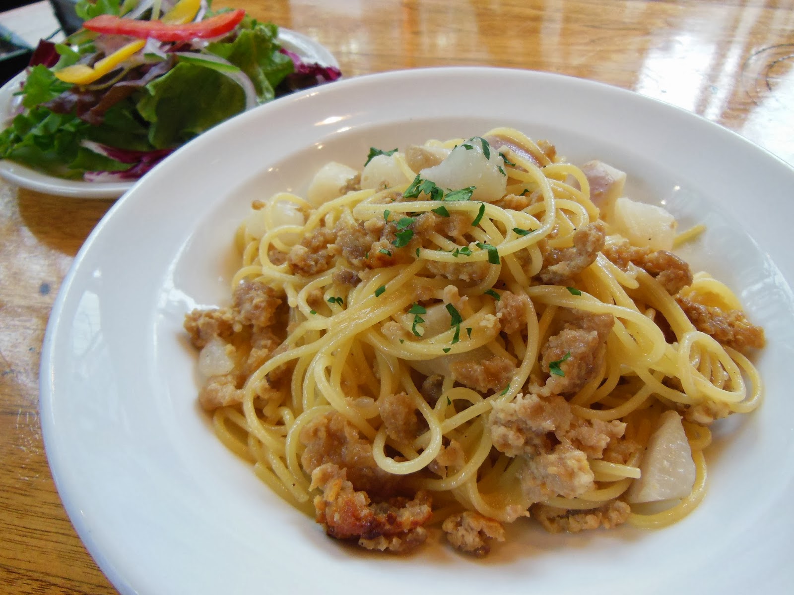 ・鶏ひき肉とミラノカブのスパゲッティ にんにくとオリーブオイル ランチドリンク付き ¥1,100