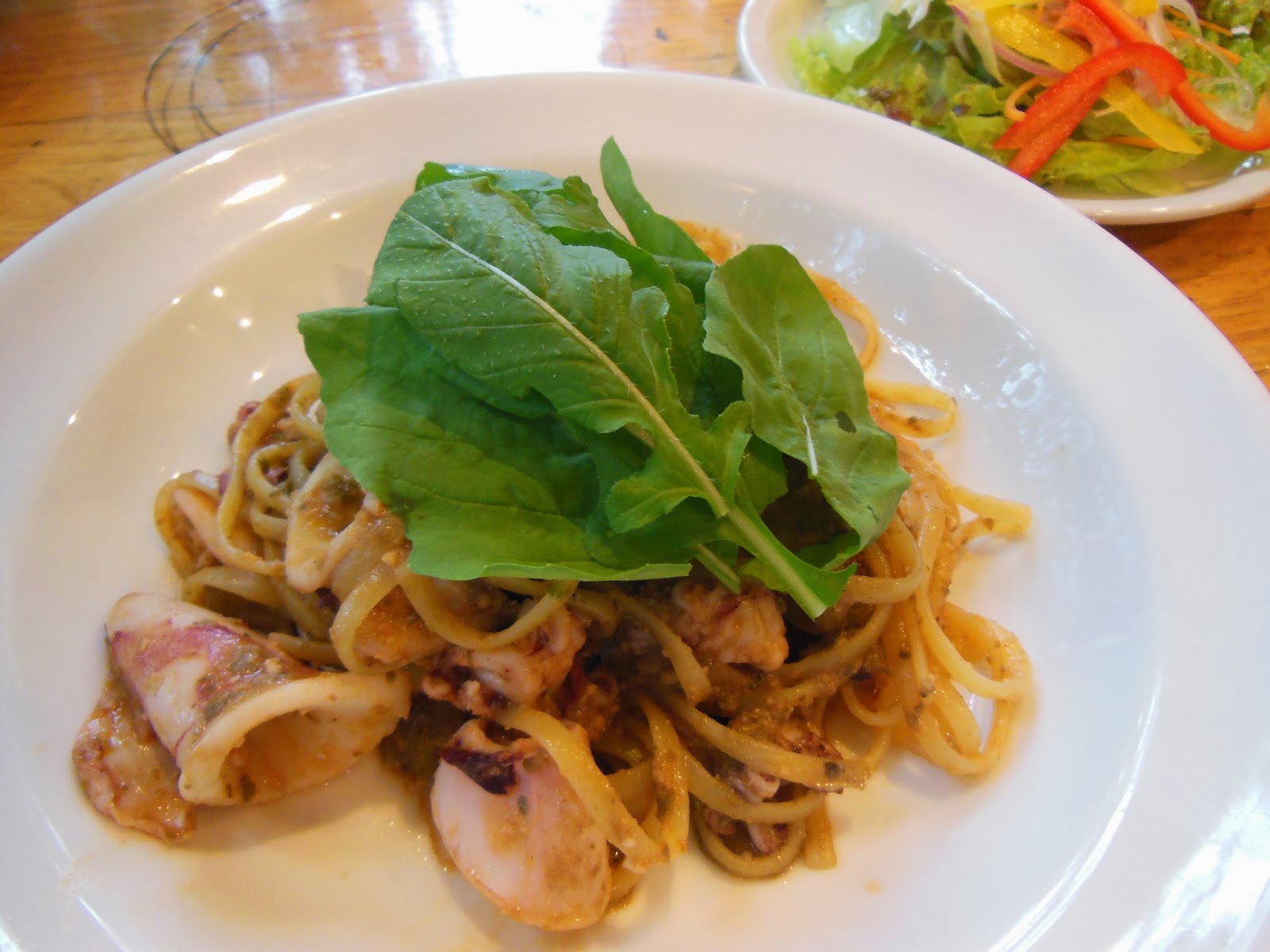 やりいかのトラーパニソースのリングイネ ¥1,300 Linguine con calmaro al Trapani.